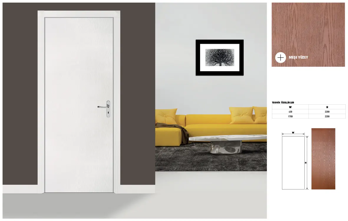 Kapı Paneli Yüzey Dokuları; Çam, Freze, Meşe ve Düz seçenekleri ile şıklığın tamamlayıcı unsuru oluyor. Yaşam alanlarında işlevselliği ve şıklığı bir arada sunuyor.